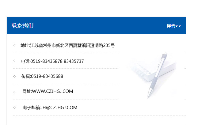 傳真:0519-83435688    郵編:213135    網址:WWW.czjhgj_com.lvshiah.com    電子郵箱:JH@czjhgj_com.lvshiah.com